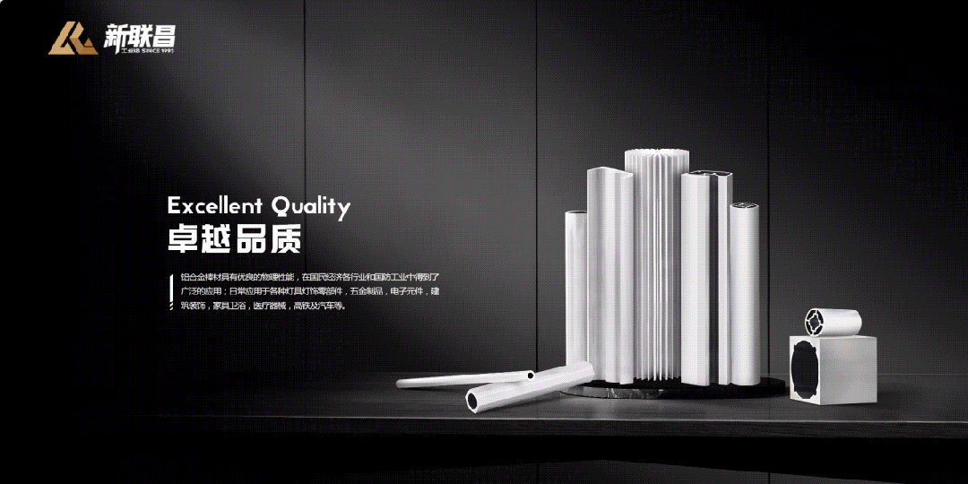 新聯(lián)昌專注于工業(yè)鋁材的生產(chǎn)制造,產(chǎn)品涵蓋1-7系鋁合金,包括鋁管、鋁棒、鋁排及各類標(biāo)準(zhǔn)型材。